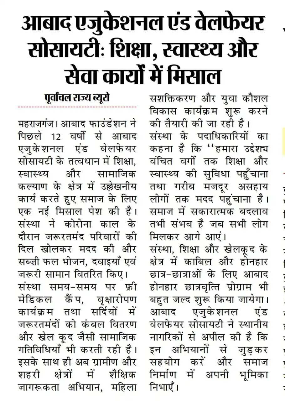 The vision behind Abad Educational and Welfare Society was born from a simple thought – “Education is the foundation of dignity, and welfare is the path to equality.”